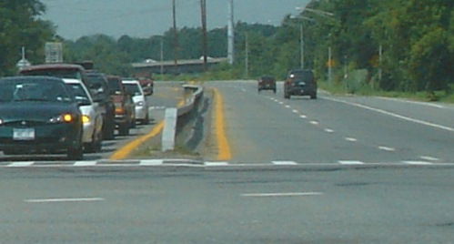 適当な映像が見当たらなかったが、一例として交差の中央分離帯のガードレールの始まりの部分の示す。