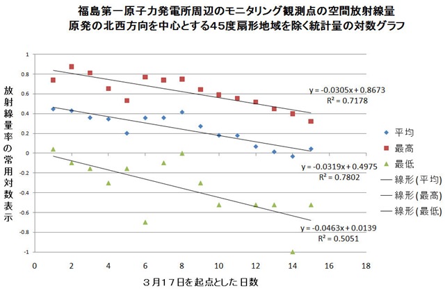 3月30日の記事に続いて、高放射線領域以外のモニタリングデータの統計を試みた。