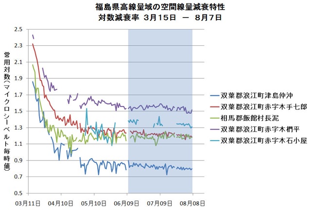 福島県20km圏外の高線量地域の空間線量率減衰特性