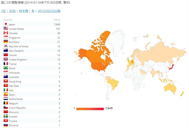 国ごとの閲覧状況2013年度 私のブログの場合