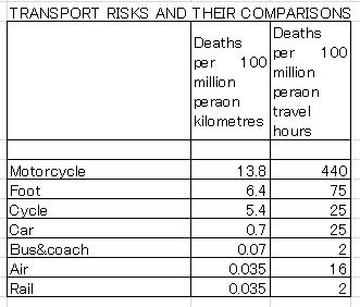 の12ページの表である。リスク評価についてはETSC Report ”Exposuere data for travel risuk ssesment”(1999).