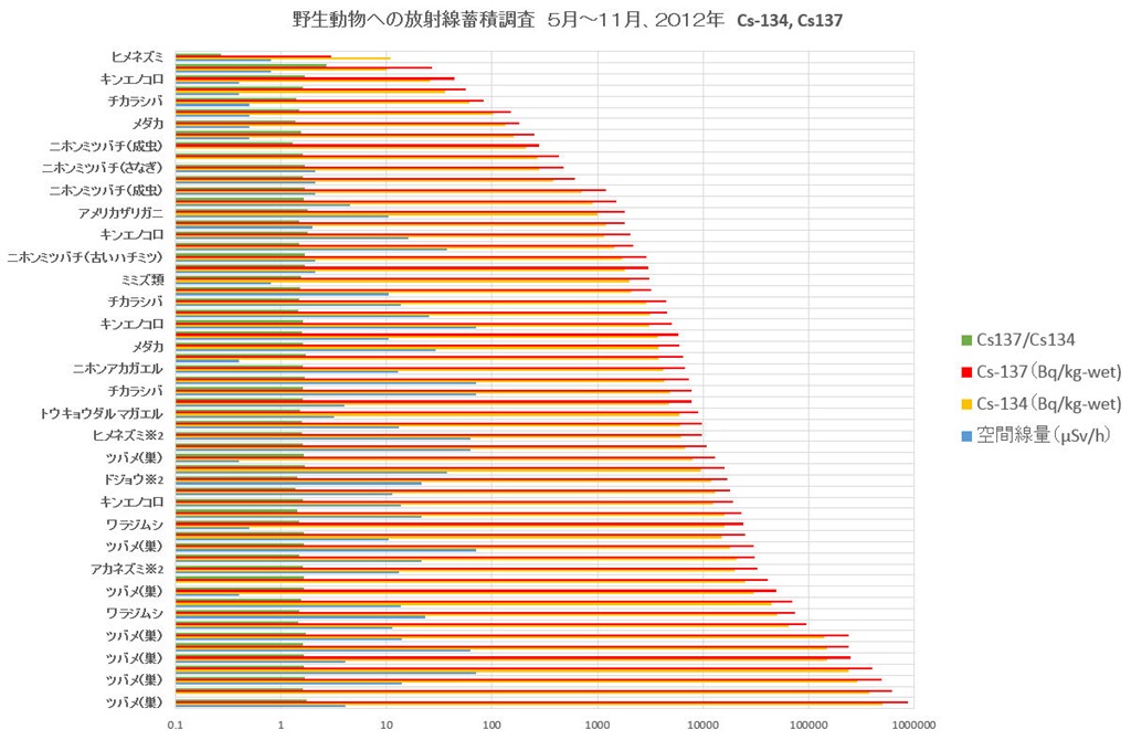 東京電力福島第一発電所からの放射性セシューム汚染の野生動植物への蓄積