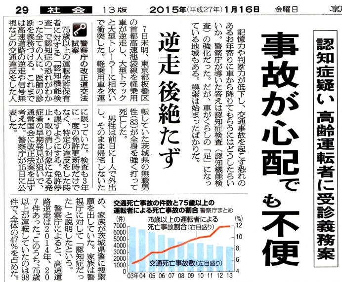 下の新聞記事を見た多くの方は、高齢運転者が日本の道路交通の脅威であるとみるであろう。
