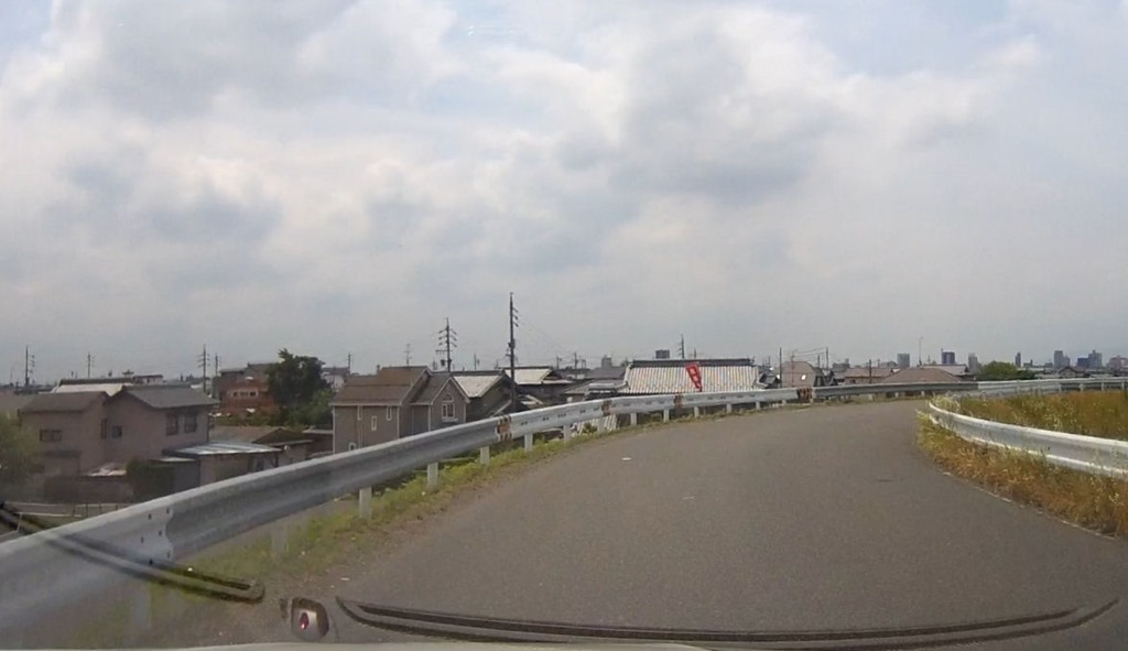 衛星写真に上書きしたこの時の走行経路の映像では、走行方向は映像の上端から下方となり、道路よりずれて見えるのはGPS位置情報の誤差のためである。