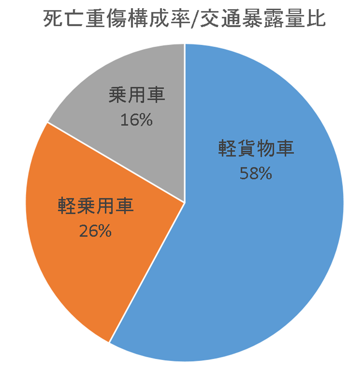 これで見ると3種の車種区分の暴露量構成率と重大事故の構成率の傾向が反対になっていることが分かる。