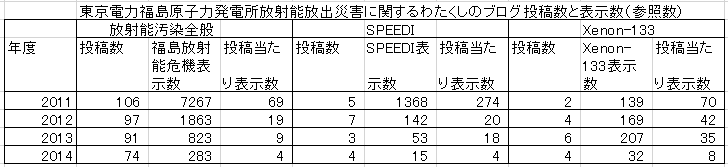 私のパソコンで収集した放射能汚染災害のデータ。その時々に投稿したブログ記事の表示集計を年度別にまとめてみた。