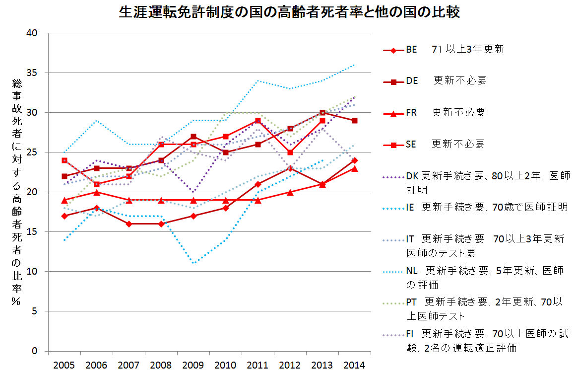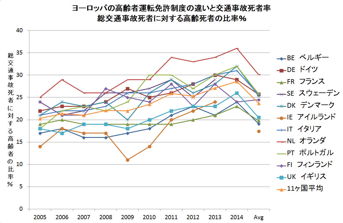 特にこの中でフランスはベルギーとともに最も高齢者事故率の小さい国として見られます。