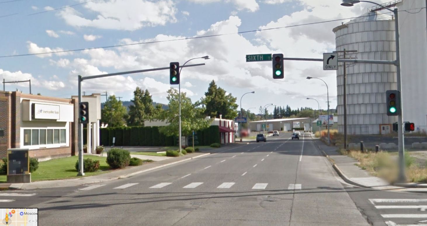 下は、アイダホ州の交差点、これは一方通行道路信号、対向車は来ない。