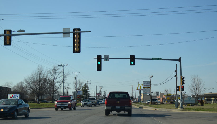 アメリカの交差点信号、西部と東部の州での例。