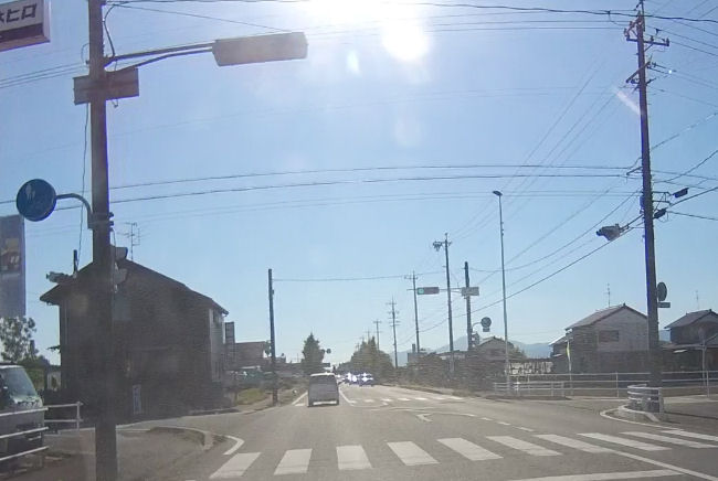 交差点信号表示 反対車線にこちら側の信号 信号の下から対向車線の車がやってくる 不可解な信号表示 どうしてこれが許されているのであろうか