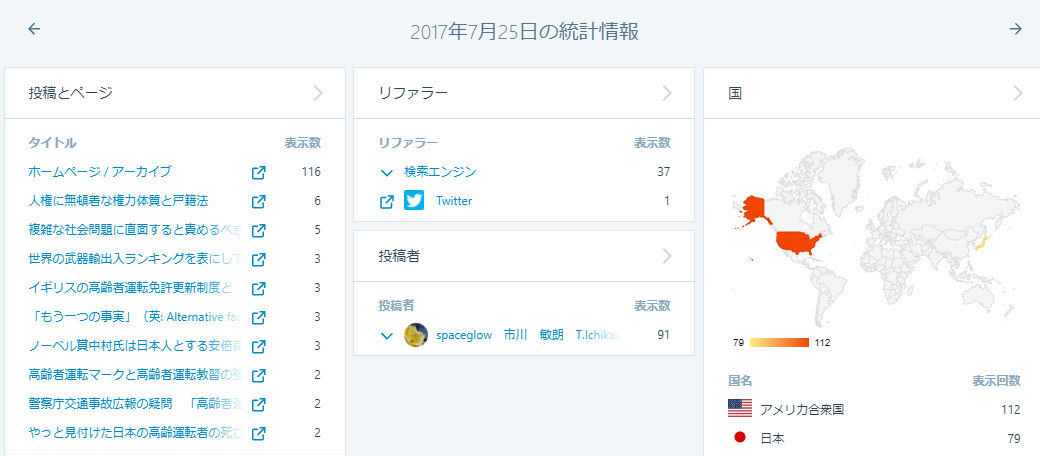 アメリカでの表示回数が日本を上回った日 私のブログ