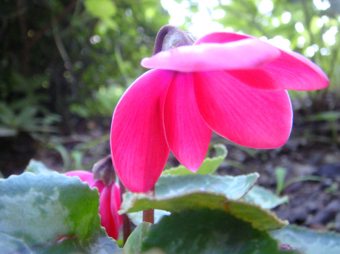 暑さに耐えて咲き続ける庭植えのシクラメン
