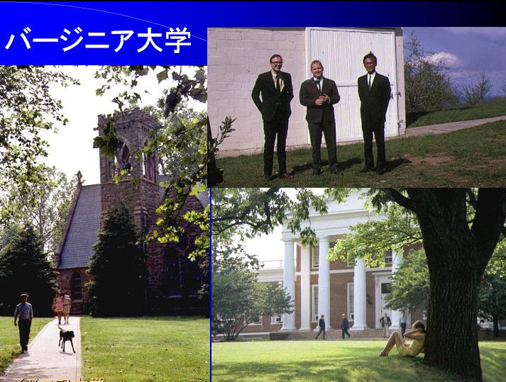 合衆国建国の父であり、独立宣言の起草者で、また第3代大統領でもあるトーマス・ジェファーソンによって創立された大学。世界遺産、美しい大学のキャンパス、良い印象しか残っていない。上段右の写真は観測施設の前で、右が50年前の私。