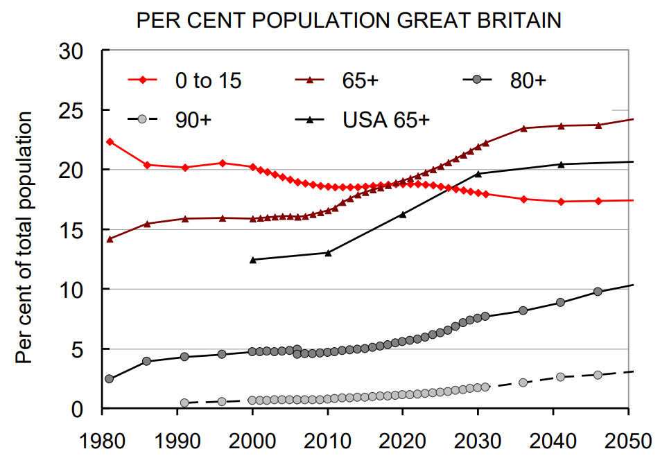 80歳以上の人口比率予測は2020年で5%、2050年でも10%である。しかしこの将来予測は意味がない。おそらく2030年までには自動運転の安全な車の実用化が完成するであろうから。
