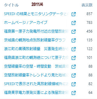 科学的な情報がない中で、4月には私のSPEEDIEの記事が最も多く表示されたことがわかります。現在までの集積表示数は1240あまりです。