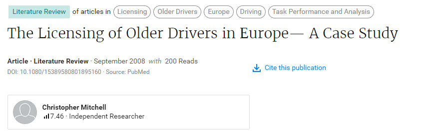”高齢運転者は危険運転者ではない” 国際的な道路交通研究機関では常識になっている認識が日本だけは信じられていないのは無知からではなく、何か作為的な現象と思いませんか?