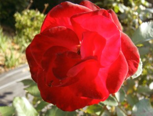 秋の終わりの日 晴天に映える庭のばら