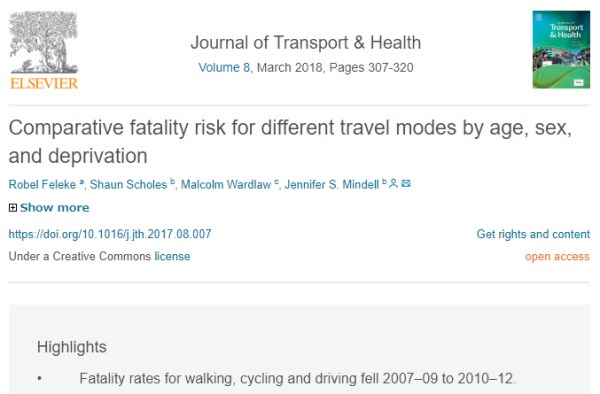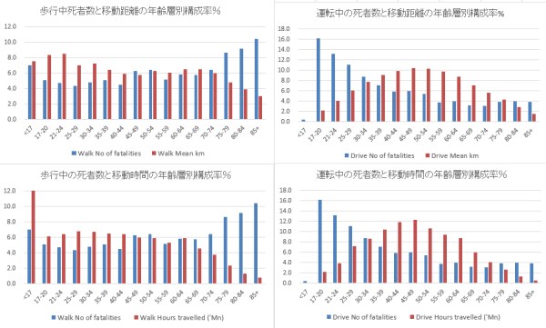 道路歩行と自動車運転の死亡事故の年齢層別構成率と移動距離時間の関係の実態 イギリスの場合