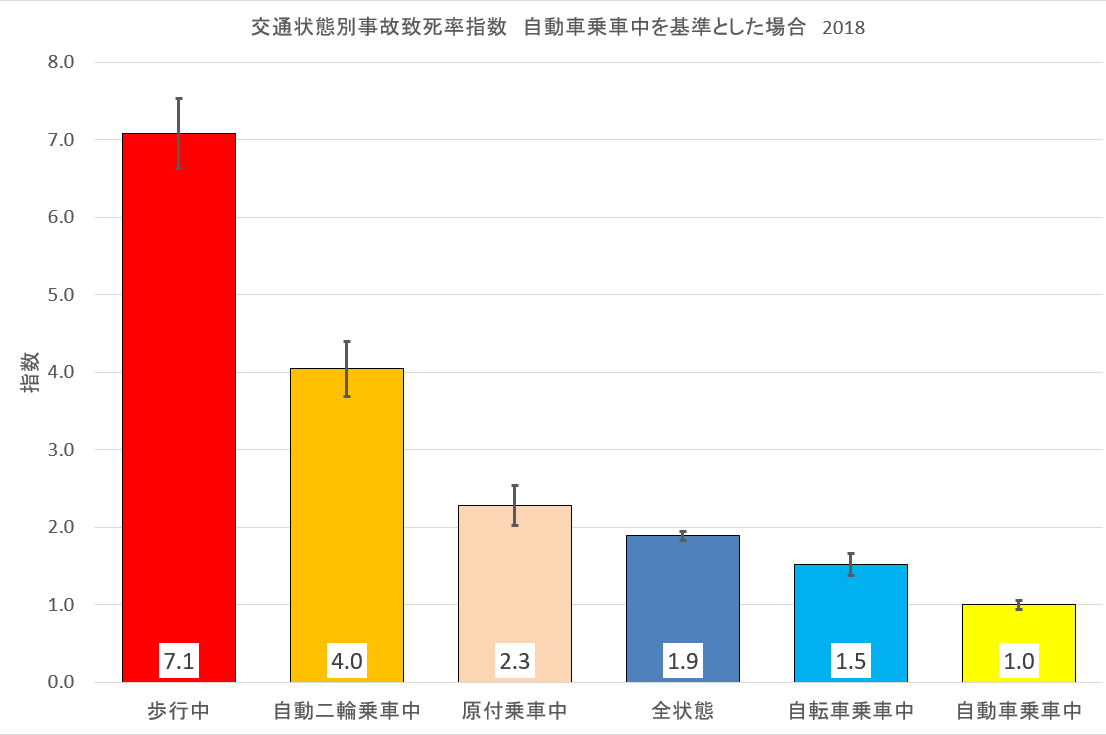 交通状態別事故致死率の違い 歩行中が自動車乗車中の7倍も