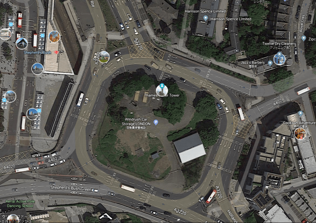 イギリス・ケンジントン、主要道路につながる巨大ラウンドアバウト。
