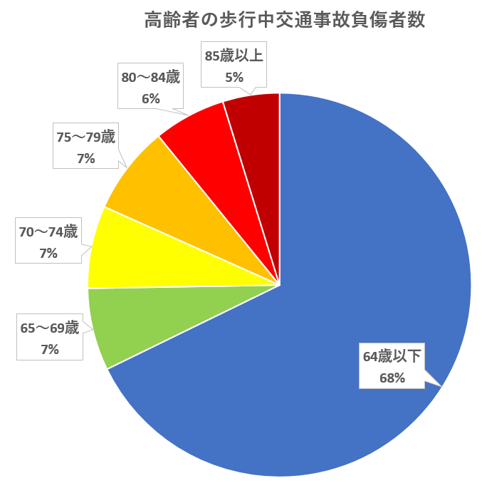 | 道路歩行中負傷者数 | 64% | 32% | 18% | 5% |