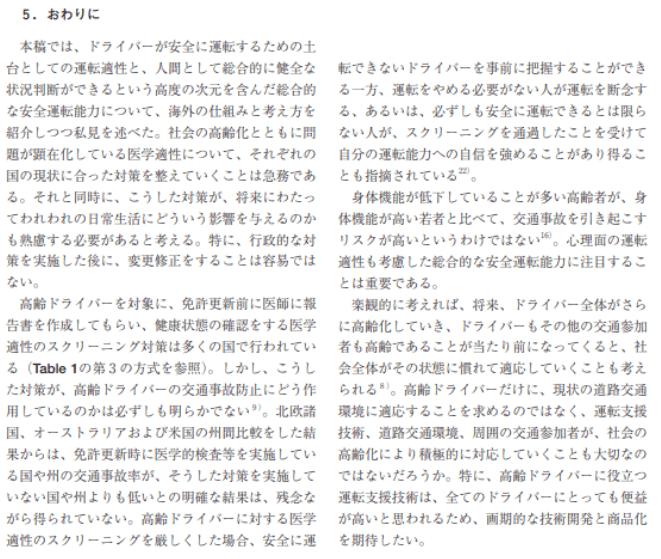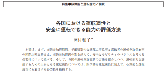 運転適性評価に関する多角的な認識の必要性説く論文を見つけた