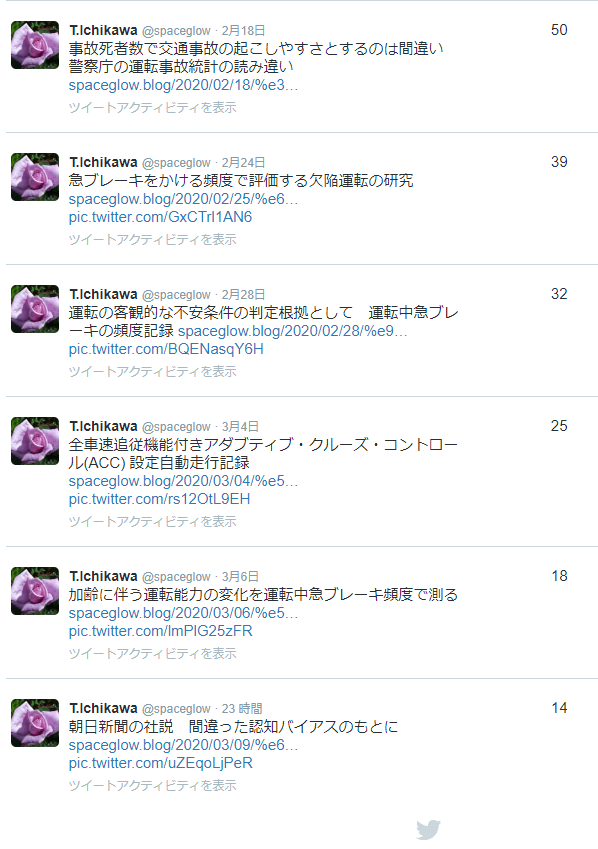 このブログは、ツイッターと共有設定をしています。直近3週間でのトップ12ツイートのリストを転載してみました。2020/3/10 10:00