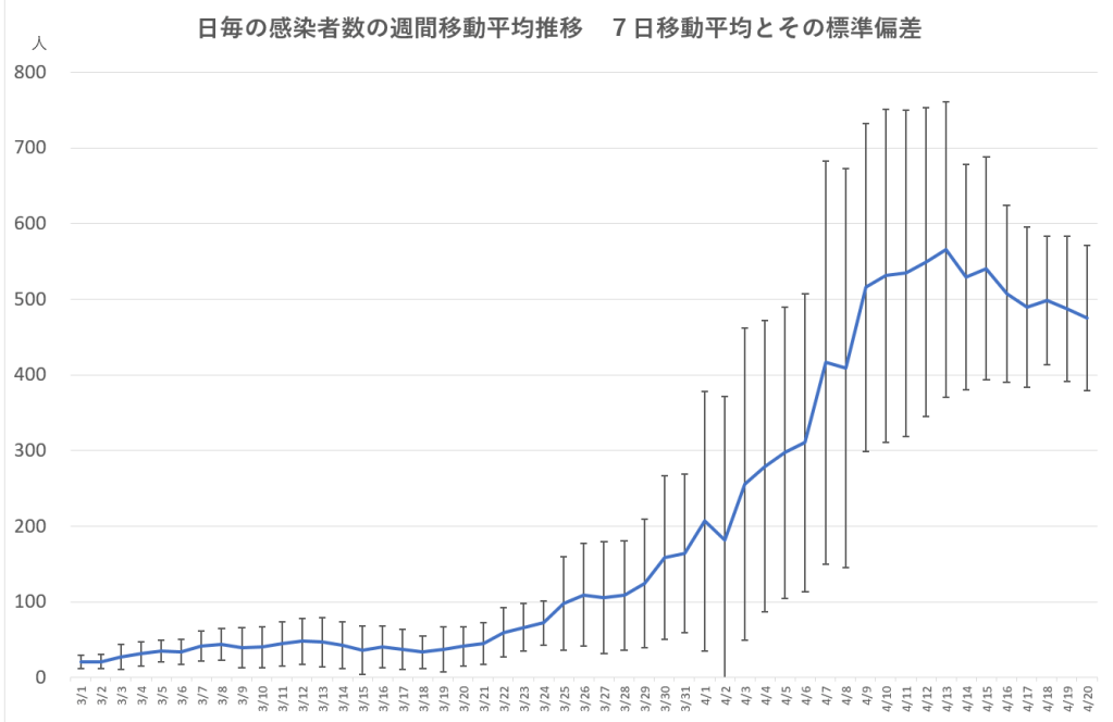 本物であってほしい COVID-19日感染者数推移 外出自粛の効果 2020/4/23