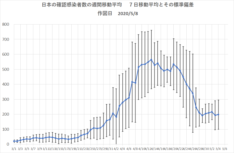 新型コロナウィルス感染者・死亡者 本物であってほしい COVID-19 日感染者・死者推移 外出規制の効果 2020/5/8