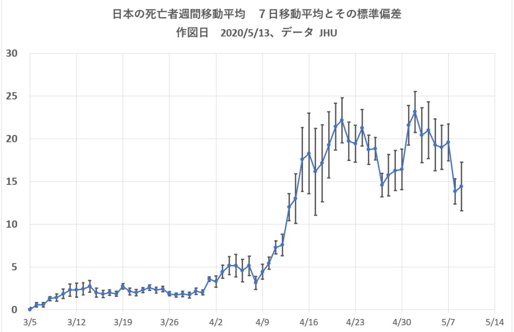 新型コロナウィルス感染者・死亡者 本物であってほしい COVID-19日感染者・死者推移 外出規制の効果 2020/5/13