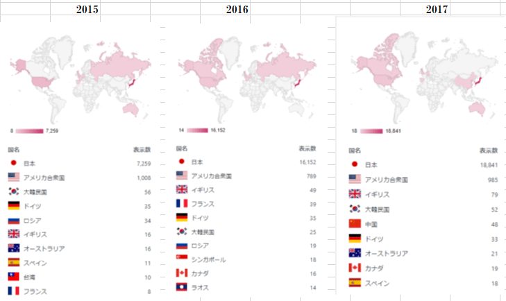私のブログ記事統計 世界での年間表示数ベスト10 2012年から