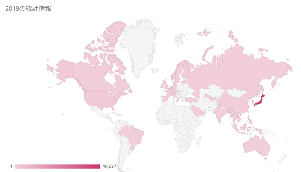 私のブログ2019年の統計 年間投稿数186編 表示数16,377 世界46ヶ国