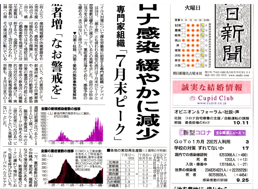 メディアは、悪いことを強調する傾向が強いが、PCR確認感染者数だけの時系列で実態を把握するのは間違いで、例えば下の新聞記事のように、第一次と第二次の拡張期には重症者数では反対の傾向を示している。