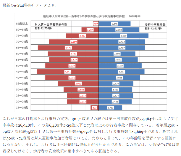 高齢者は運転中 対人傷害第一当事故件数に比べ 自動車との歩行や自転車利用中の受動事故の方が圧倒的に多い事実 それを隠し高齢運転者差別をする意図は?