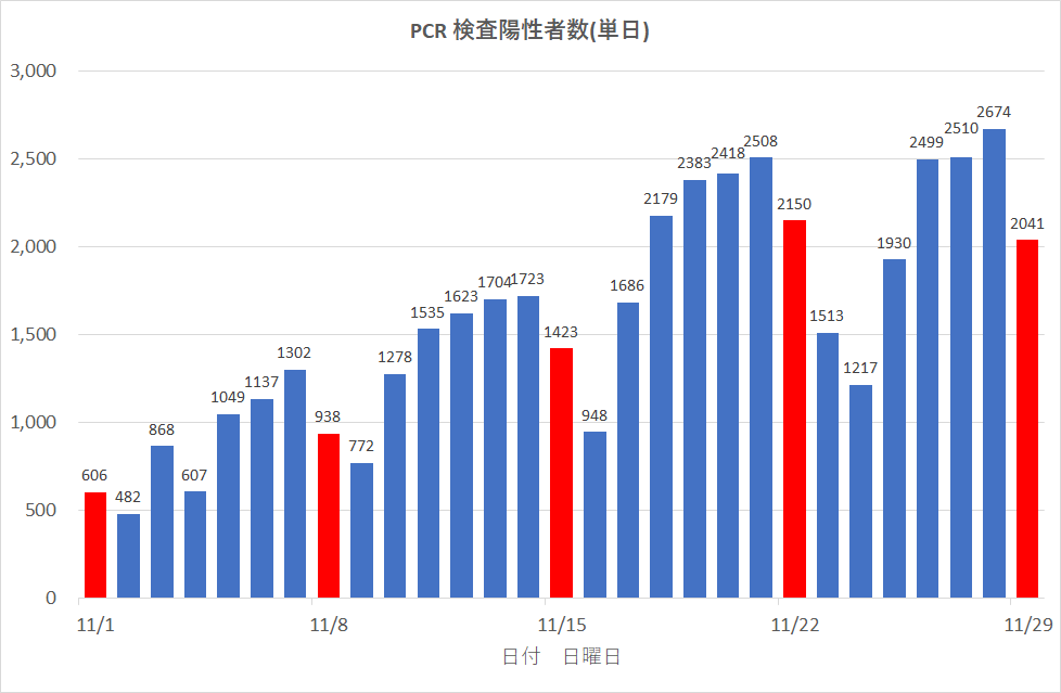 歳3波と見られる11月1日以後の状況を見ると、理由は分からないがこの週日効果が非常にはっきりして来ている。