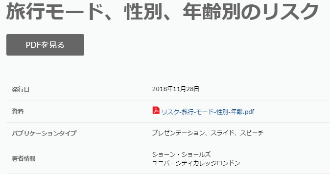道路交通 旅行モード、性別、年齢別のリスク