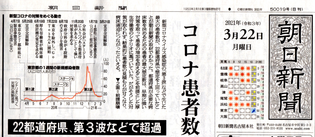 コロナ分析 今日の新聞記事と3月1日に書いた私のブログ記事