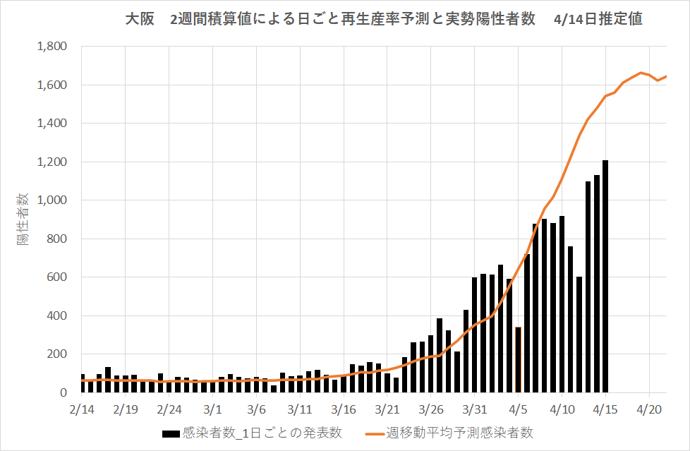 COVID-19感染 大阪の場合 簡易感染再生産率から見てあと1週間で第4次拡大は頂上を見るか?