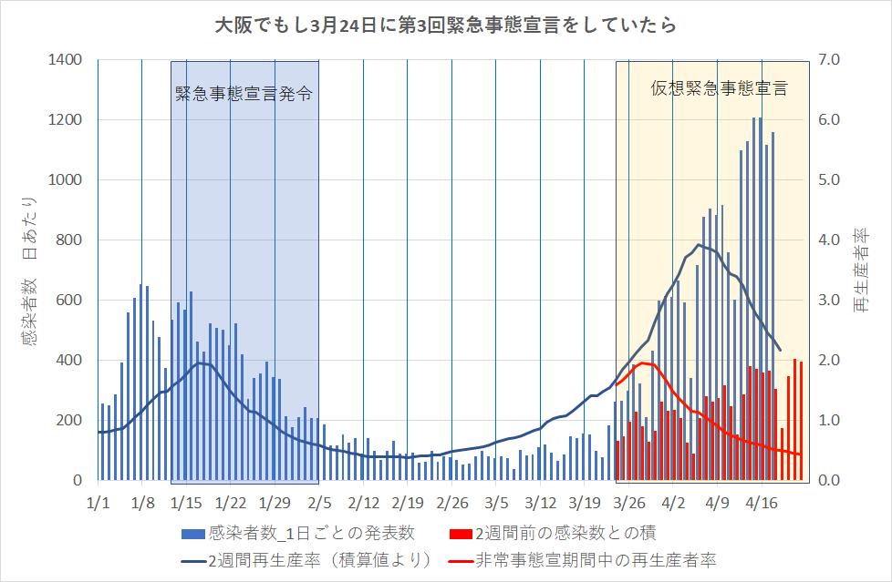COVID-19 もし大阪で 3月21頃緊急事態宣言が発せられていたら 感染者増大は第三波以下のはず