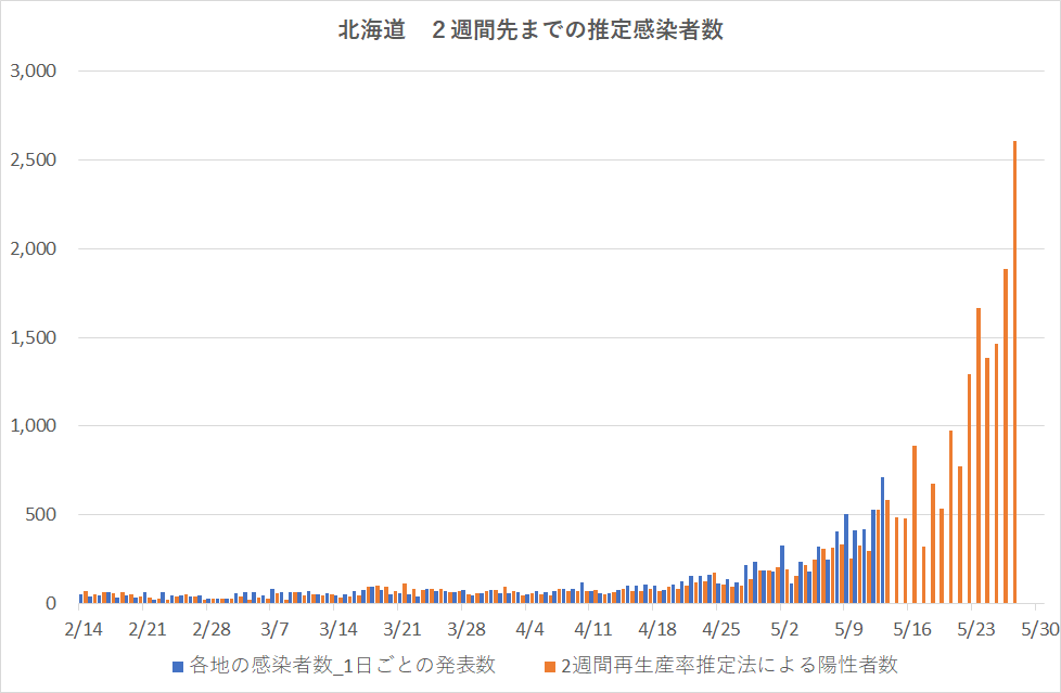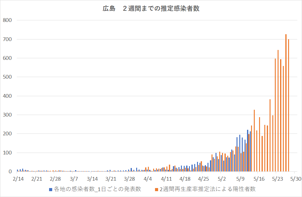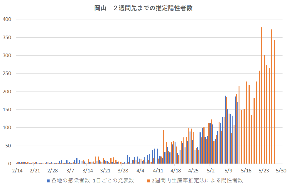 先のNHKデータを用いた感染者予測を、北海道、岡山、広島、について試算してみた。