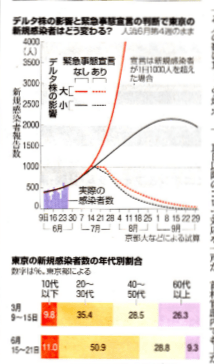 科学的検証の不確定な公表データからの推測であり細かい数字の比較は出来ないが、オリンピックのために第5次感染爆発の予測は重要である。