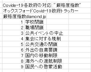 OWD アワーワールドデータのデータベースにリストされているCovid-19政府トラッカーを用いて日本の場合を見た。