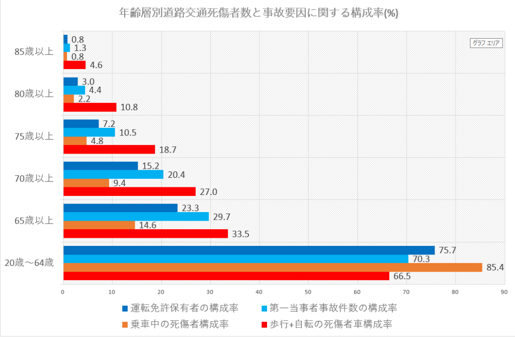 高齢運転者を排除してもその交通需要は減らない、 歩行・自転車に移行し死傷事故が増加する。 その証拠を見る