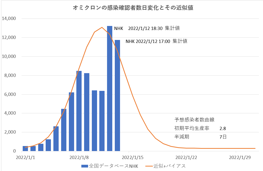 COVID-19 日本のオミクロン? NHK集計速報値と予測曲線