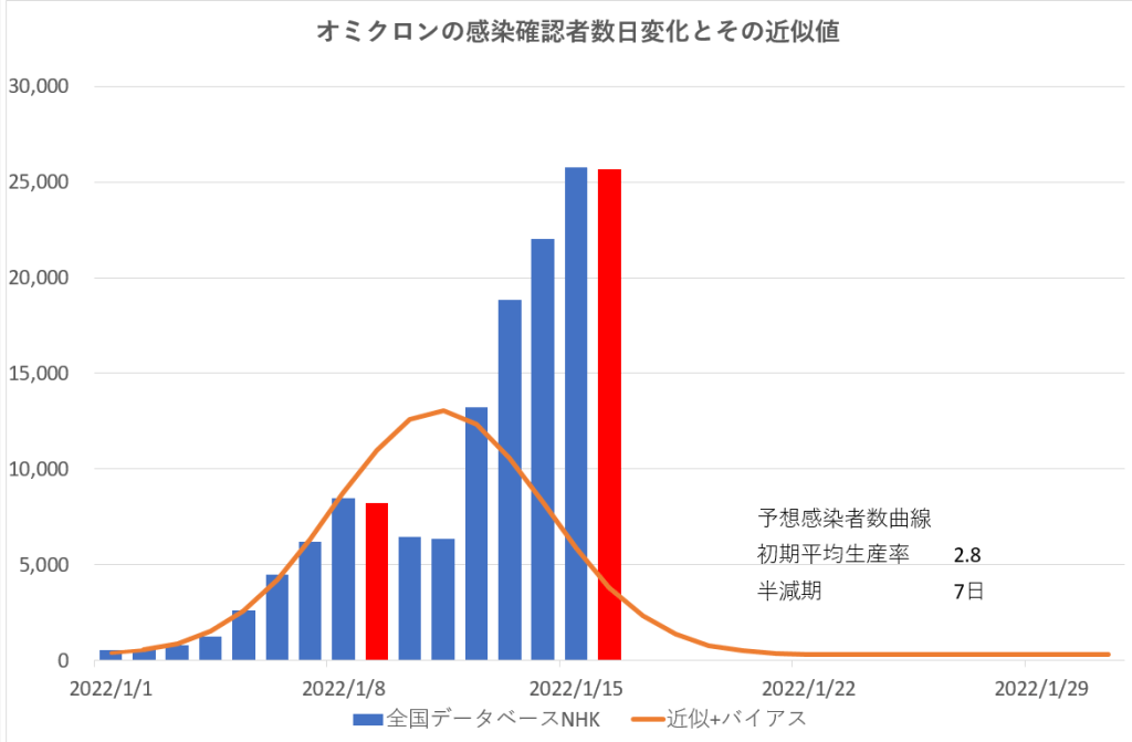 最初の1週間モデル、2週間目の確認者数は大きく突き抜けた。