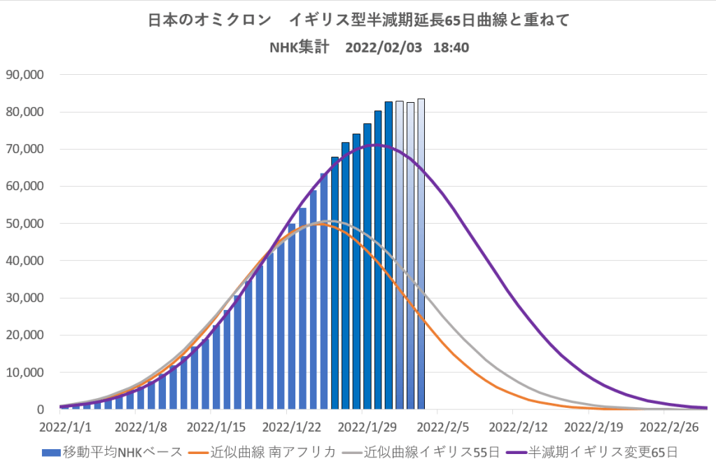 近似曲線を変更し変異株の半減期を72日とした場合。