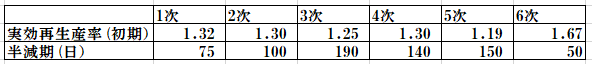 特定の変異株は感染毎に遺伝子情報(ゲノム)のコピー誤差により経時的に変質する。変質による統計的な減衰の半減期を仮定したモデルを考える。