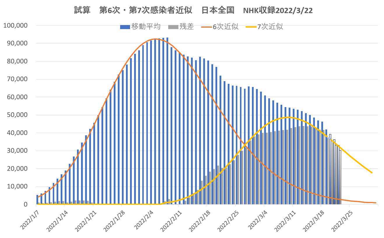 COVID-19 感染確認者数 幸い予測線に向かって順調に減少している →