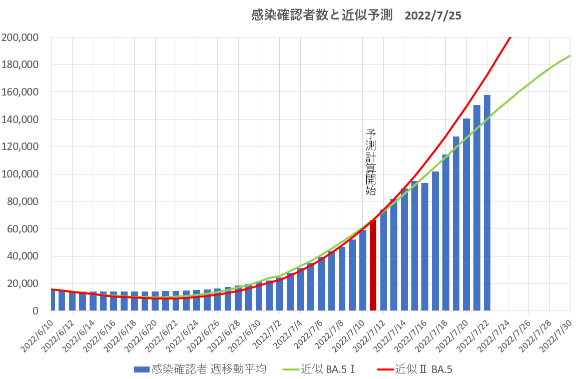 私の表記では、1週間移動平均値の日付はその週間の中央の日付で記載している。してがって移動平均値の日付は週間最終日の3日前となることに注意して下さい。