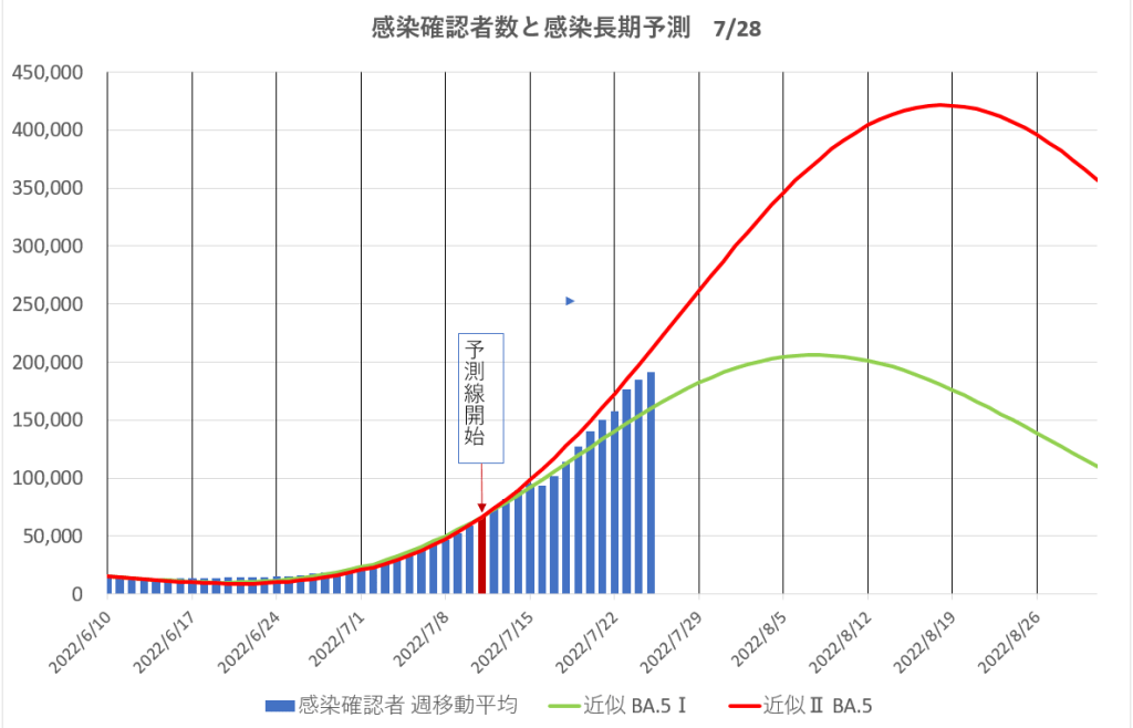 COVID-19 日本のオミクロン このまま行けば8月10日~18日頃が感染者数の頂上に